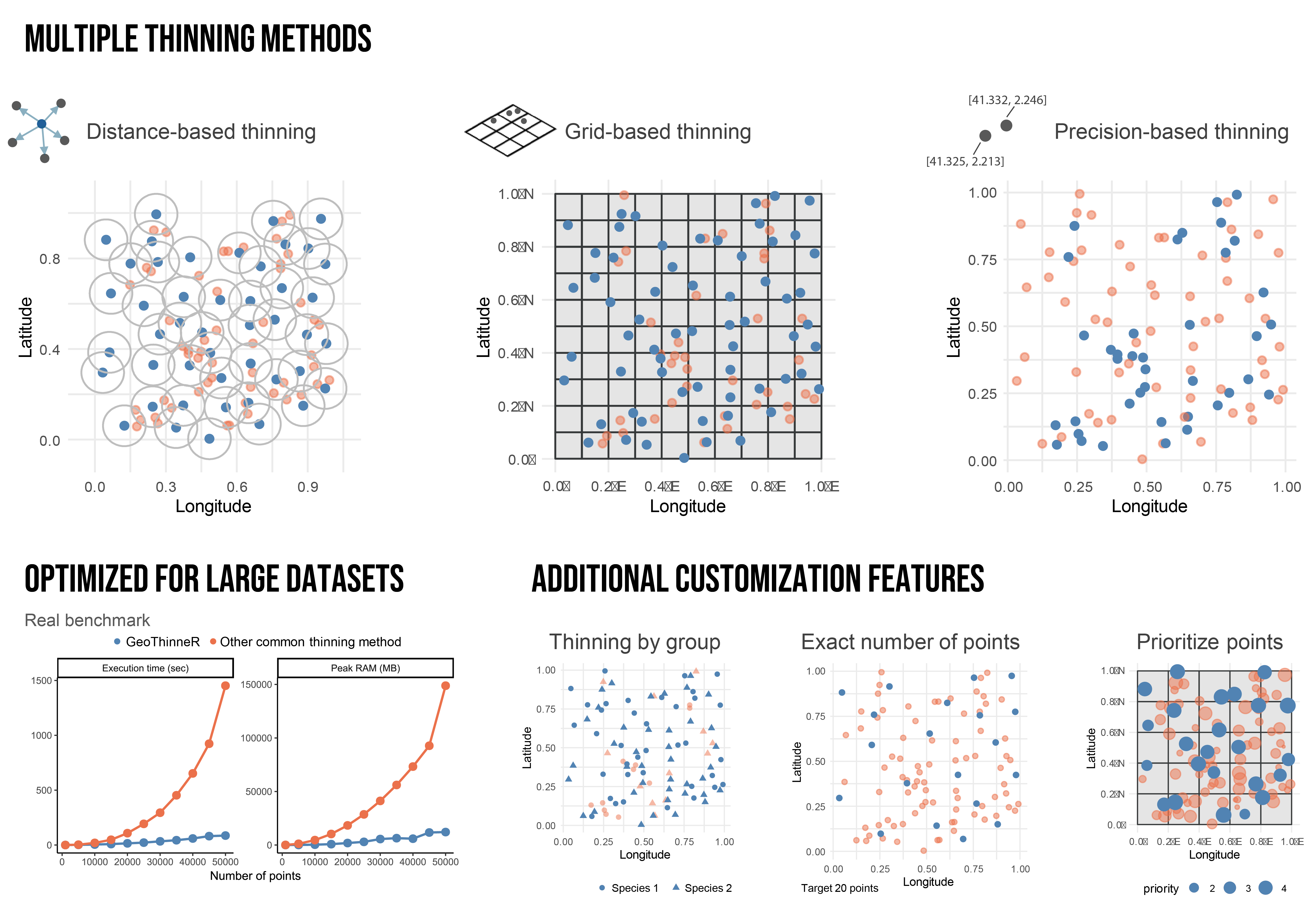 Mestre-Tomás, J. (2025). GeoThinneR: An R Package for Efficient Spatial Thinning of Species Occurrences and Point Data. arXiv preprint arXiv:2505.07867. DOI: https://doi.org/10.48550/arXiv.2505.07867