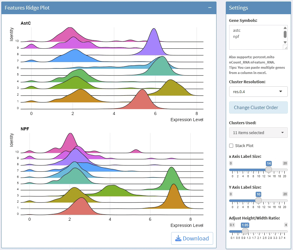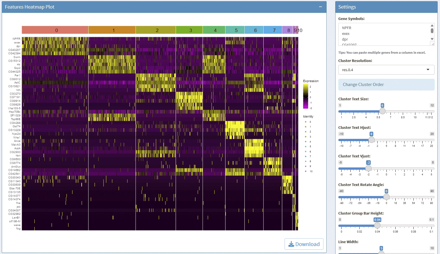 A: Yes! Most visualizations can be downloaded as PDF files. Analysis results (DEGs, feature summaries, etc.) can be downloaded as CSV files. Cluster name mappings can also be exported.