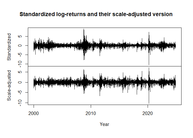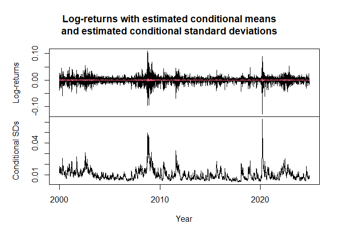 install.packages("fEGarch")This is a basic example which shows you how to fit a model of the EGARCH family to the Standard and Poor’s 500 daily log-returns.