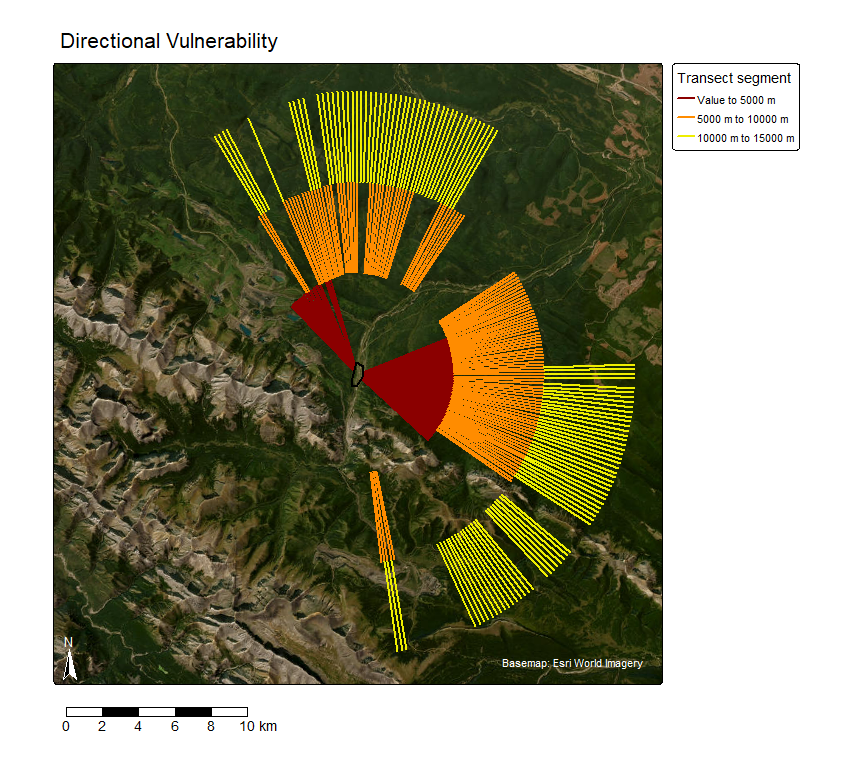 This example shows a basic workflow to assess the long-range ember exposure and directional vulnerability for an area of interest.