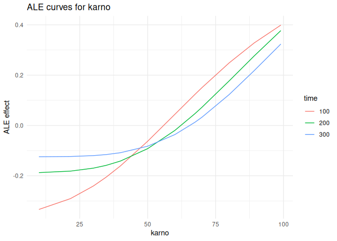 plot_ale(ale_karno, feature = "karno", which = "per_time")