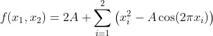 where xi ∈ [−5.12, 5.12] and A = 10. It has many local minima and its global minimum is at (0, 0) with the minimum value 0.